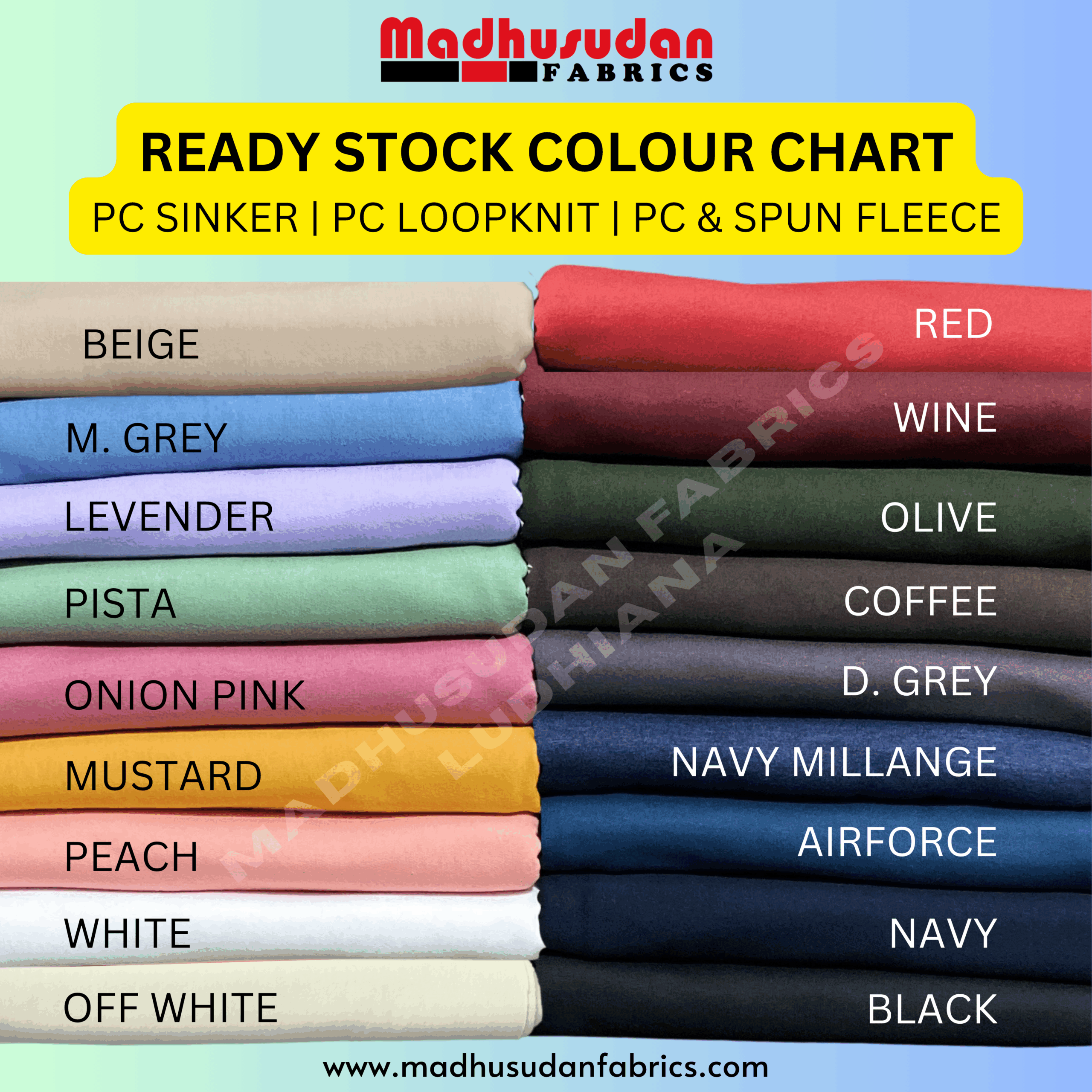 Yarn CompositionPolyCotton (48:52), (40:60), (20:80)